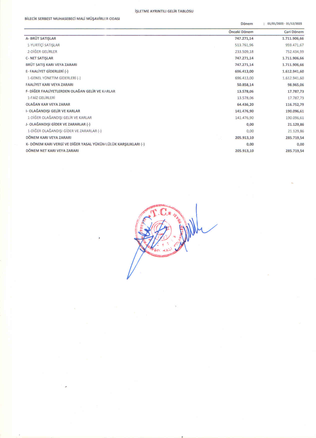2025 gelir tablosu